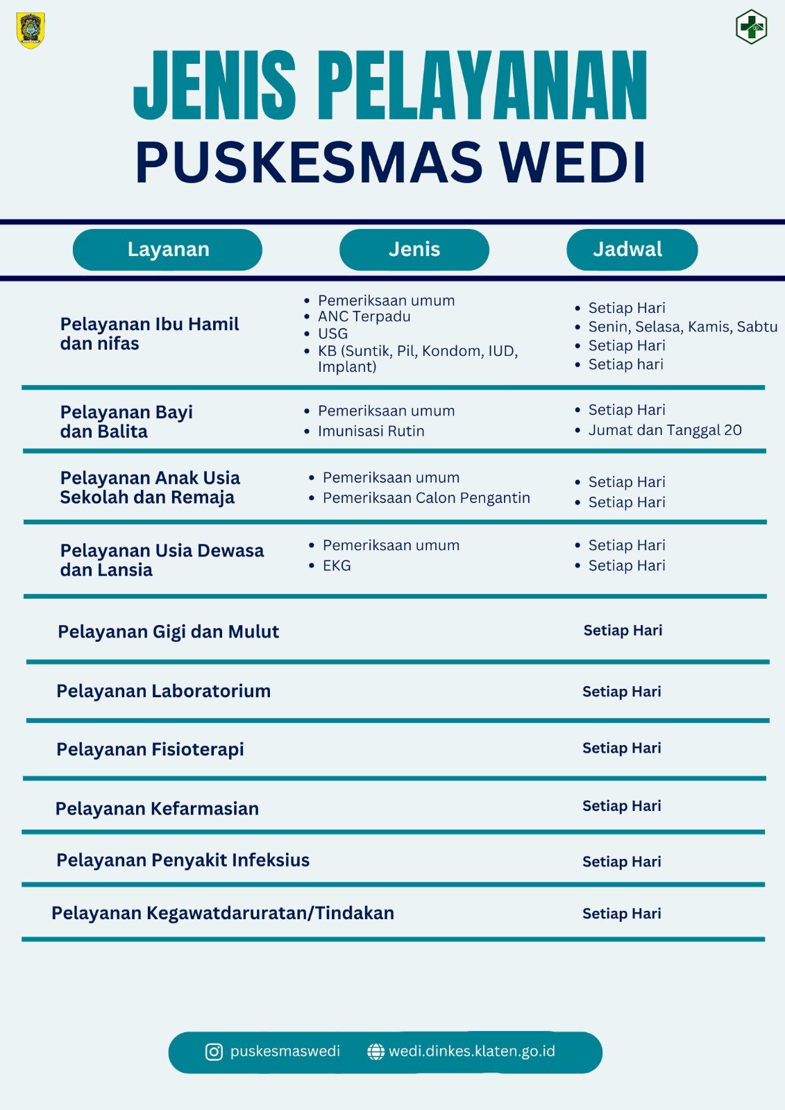 JENIS DAN JADWAL PELAYANAN PUSKESMAS WEDI